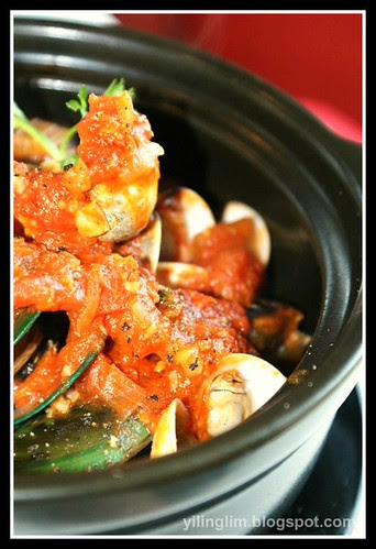While mussels and clams are regulars at steamboat places, it is quite rare to see any eateries brave enough to offer this dish on its own (dai chow doesn't count). The first time I had a pot of mussels was sometime last year when I was in Singapore at Brussels Sprout. The second time was probably in Perth, chilli mussels at Nero's. This would be my third I guess.